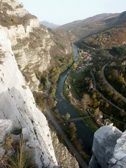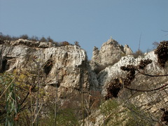 The cliffs of Lakatnik rise in a magnificent rocky massif, part of Stara Planina or The Balkan. They are situated opposite Lakatnik, which is a small station on the busy Sofia - Varna railway (where is that). The railway itself follows a picturesque valley, called The Iskar Valley or The Iskar Gorge. This river valley has been created by the river of Iskar in prehistoric times. The limestone cliffs form almost vertical walls with height of about 100 to 250m. (300 to 750ft.), making them perfect for alpinism and a favorite place for climbers. The rocky massif is cut by many holes and caves, which also attract tourists. The vast karst region collects many waters, forming a big underground river that exits under the cliffs.