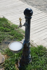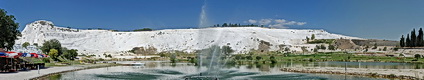 Да казвам ли, че езерцето и фонтана са добре направени, а наоколо е съвсем чисто? Има малък парк, а във водата се гмуркат патици. Над нас са огромните, чисто бели скали. По диагонал през скалата се спуска пътека, по която пъплят точици-хора. Доста топло е, но това отдавна не прави впечатление на никого. Не виждаме тълпи и туристически автобуси, а и паркингът е безплатен - досещаме се, че не сме на най-правилното място. Качваме се обратно на колата и минаваме покрай тримата под дървото по другия път. Пак нещо викат, но по-вяло. Пътят се изкачва към горната част на скалите, където някога е бил древният Хиераполис, а сега се намира входът за природната забележителност. Оставям жените, връщам се долу и паркирам на старото място. Така не само спестявам цели 5 лири, а и имам възможността да се изкача пеша по диагоналната пътека с точиците-хора. Разбира се това не ми спестява 20-те лири вход. Минавайки сам с колата пак покрай онези тримата, те вече съвсем не ми обръщат внимание. Отписан съм.