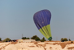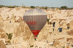 Е, въздържаме се от полет, но очарованието от видяното е огромно. Още е много рано, но балоните набират височина и слънцето ги огрява. Цветовете им оживяват. Някои минават толкова близо до нас, че почти можем да ги пипнем. Вижда се даже полепналия от земята прах. Снимам ли снимам. 11.2 кратният зум на обектива 18-200 е идеален за целта. Редувам широки панорами с детайли от балоните и пасажерите. Някои сякаш нямат късмет и остават да се влачат близо до земята. Други, които са случили на атмосферни условия и пилот, се завират между скалните образувания в самото село и буквално надничат в прозорците на хората. Някои пък се издигат прекалено много и отпрашват към Учхисар. Минава повече от час. Някои балони се спускат и "омекват" върху земята. Други са все още около нас. Първо по селската улица, а после с облаци прах направо по хълма поема кавалкада от микробуси, които ще приберат пътниците от балоните. Следва промяна на вятъра, команди по радиото и всичко това прави обратен завой и сред нови кълба от прах поема обратно надолу към съседния хълм. Появяват се и мощни джипове, които с гръм и трясък влачат ремаркета за транспортиране на самите балони. Насочвани като микробусите и те се връщат обратно. Стоим и гледаме - дори техническата част на операцията е завладяваща.