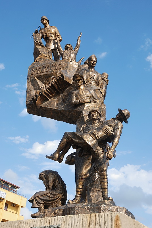 На другата сутрин хотелската закуска е приятна изненада - най-добрата до сега. Има дори кафе и мляко! Някои си приготвят багажа, а аз изследвам околността. Вятърът малко е поутихнал, но все още е твърде силен. Поне се ходи лесно. Площадът и главната улица изглеждат добре, но малките улички около хотела са отчайващо мръсни. До морето е неизбежният паметник за битките на п-в Галиполи. Отново, точно както в Анкара, прави впечатление турският войник, който носи на ръце ранен новозеландец. Разхождам се по боядисано в синьо очертание на Дарданелите, а под краката ми табелки сочат местата на потопени кораби на Антантата. Около мен са възстановки на битки. Връщам се в хотела - трябва да тръгваме. Правим го, но преди това се опитвам да изчистя мръсните стъкла на колата. Размазва се ужасно. До нас стои и ни гледа шофьор на такси, който с видимо удоволствие казва на английски: "Морска вода!" Да, трябваше да се сетя, че срещу солта, насъбрана на ферибота, ще помогне само вода. Изненадващо край пътя намираме чешма и започва миене на прозорци. Наоколо спират турски коли и ни питат за пътя за Гьокче Ада. Безпомощно вдигам рамене. Прави впечатление подчертаната любезност на хората, която ни най-малко не се променя, когато разберат, че съм чужденец и не мога да им помогна. Една котка ни харесва и влиза в колата. Искала да емигрира в България. Караме покрай Дарданелите. Рядко красиво е. Намираме удобно място и спираме да проверим дали водата е мокра. Мокра е, но вятърът набързо ни кара да продължим. Пътят е обикновен и тесен, а колите доста. За пръв път ставаме свидетели на изпреварвания "ала България." Изкачваме високото, а до нас се появява тюркоазено синият залив Сарос.