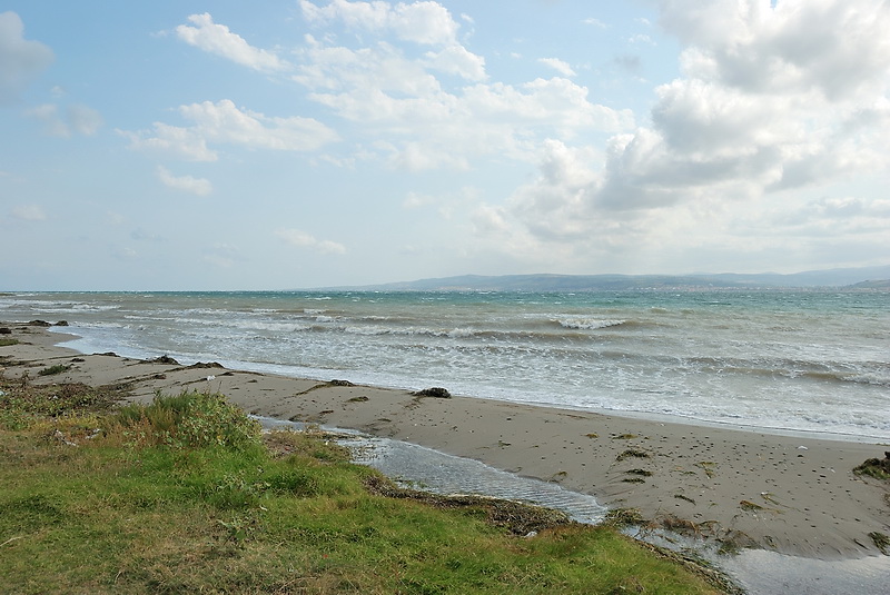 Следваме пътя и безкрайно дълго заобикаляме големия Едремитски залив. На паркинга на един магазин срещаме българска кола. Първата! Е, изключвам един изтребител, който ни задмина някъде около дядката с реното и ключа. Хората любезно ни поздравяват и явно се радват да ни видят. Радваме се и ние. Караме десетки километри през практически непрекъснато населено място - изглежда курортно, а наоколо има паркирани стотици коли. Накрая поемаме по високата планина, която ни отделя от Чанаккале и Дарданелите. Пътят е тесен, стръмен и криволичещ. За щастие има само една какичка, която се движи твърде бавно. Планината е доста по-зелена от тези на юг. Красиво е. След стръмното изкачване следва по-равна част, сини зъбери в далечината и в един момент пред нас блясва Средиземно море, което постепенно се стеснява и започва да се нарича Дарданели. Троя е съвсем наблизо, но я пропускаме. Няма много за гледане, а и вече сме я виждали.